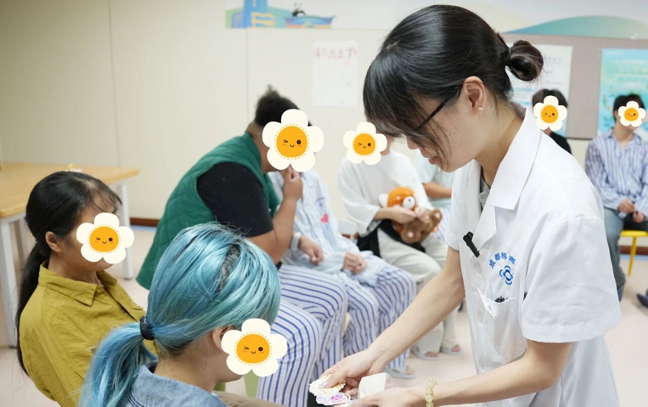 面向住院患者的主题团辅活动,是本次活动的疗愈亮点。该团辅方案由我院康复疗愈中心,基于积极心理学理论与团体心理诊疗方式设计,以觉察我的能量场为主题,带领参与患者重新链接内心资源,提升感知幸福的能力。
